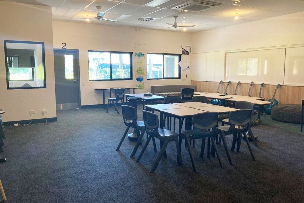 Learning Area 4 is a fresh 70m2 environment, featuring tables, chairs, and whiteboards. This space is suitable for a meeting, group, workshops, activity or recreation area for approximately 20 people. It is possible at request, for concertina walls to be removed and include the hire of Learning Area 3 (65m2) which would double the space, at an additional cost.