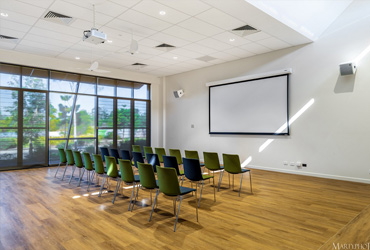 Meeting Room 1 and 2 can be hired as one space or can be divided into two rooms. Televisions are mounted on both end walls and can be played simultaneously if required.