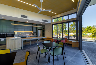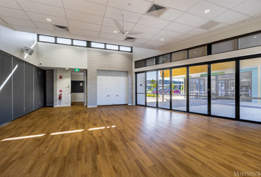 The spacious Training and Development Space boasts independent access and a kitchette. Two whiteboards are wall mounted.
